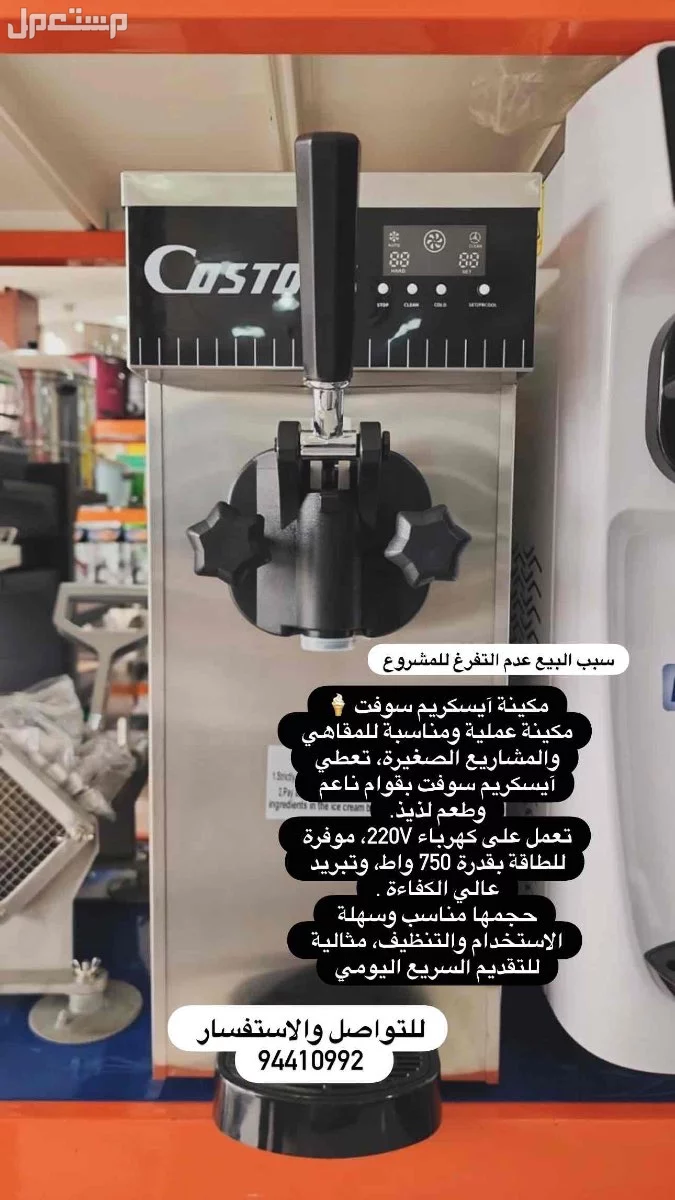 مكينة عملية ومناسبة للمقاهي والمشاريع الصغيرة، تعطي آيسكريم سوفت بقوام ناعم وطعم لذيذ.
