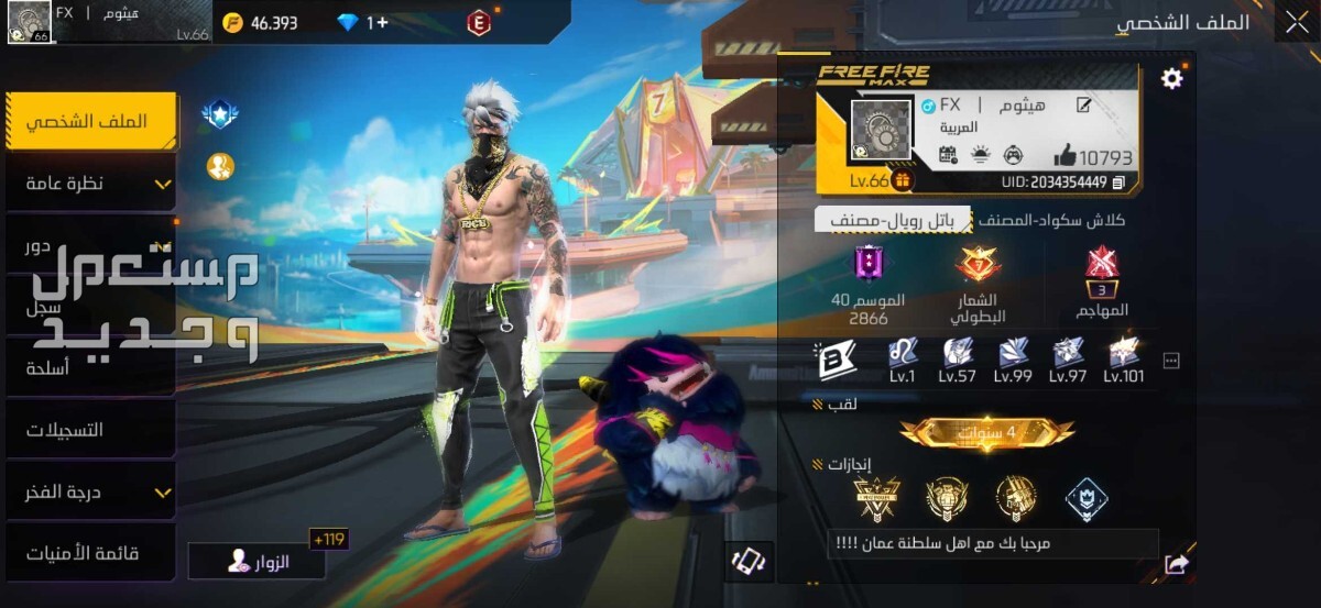 حساب فري فاير للبيع في جعلان بني بو حسن بسعر 45 ريال عماني