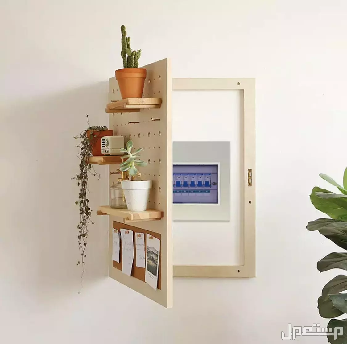 أغطية خشبية مخصصة من الأفكار العملية بين أغطية لوحات الكهرباء التي تناسب الديكورات التقليدية والعصرية على حد سواء، يمكن تصميم الغطاء من الخشب المطلي أو المعالج بحيث يتناسب مع لون الجدار أو الأثاث، ويمنح الغرفة إحساسًا طبيعيًا ودافئًا مع الحفاظ على إمكانية الوصول للوحة عند الحاجة.