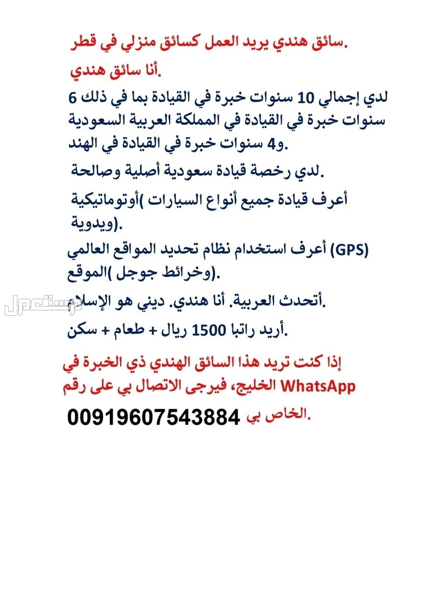 يرجى الاتصال بي، إذا كنت تريد سائقًا هنديًا ذا خبرة سعودية من الهند.