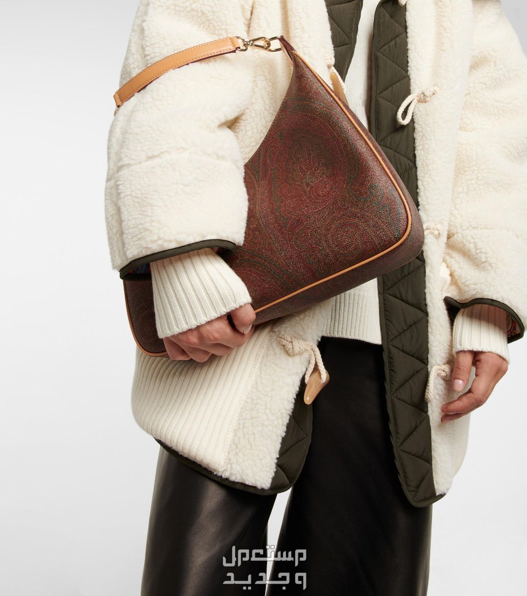 مواصفات أفضل شنط ايترو Etro شكل شنطة MEDIUM PAISLEY SHOULDER BAG WITH LEATHER DETAILS أثناء حملها