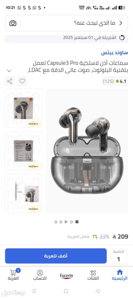 سماعة ساوند بيتس كابسول 3 الاصلية جديدة شريتها من نون 209 ريال ما استعملتها فقط فتحتها للتجربة سعر البيع 150