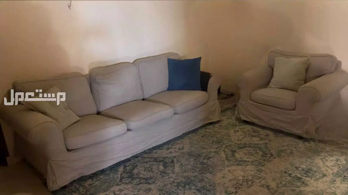 كنب ثلاثي + كنب فردي - بحالة ممتازة - قماش قابل للتبديل او الغسيل - مريح في الجلوس ومناسب لوضعية الجلوس ابصحيحة والمريحة