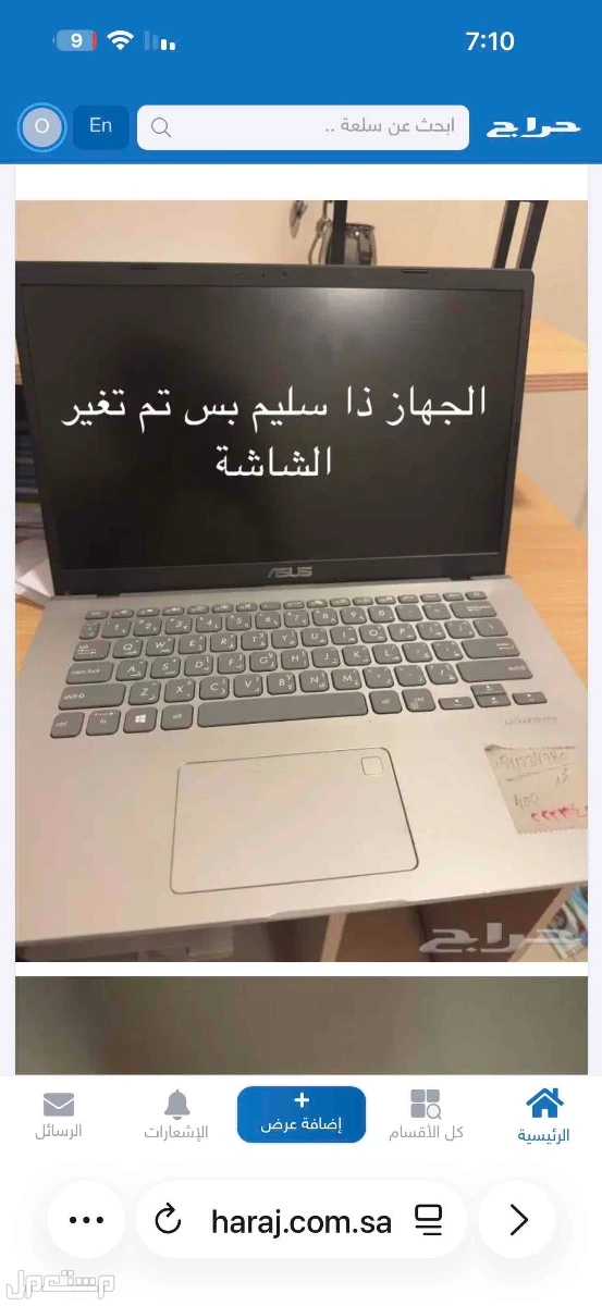جهاز لاب توب اسس مستعمل تم تغيير الشاشة وهو بحالة جيدة ومناسب اتمنى التواصل من الجادين فقط بسعر قابل للتفاوض