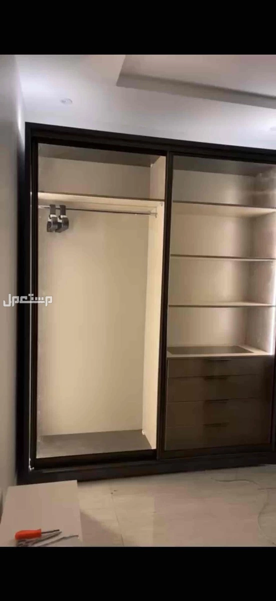دولاب ملابس نظيف استعمال سنه اللون تقريبًا رمادي من برا وبيج من داخل والباب عسلي ، مفكوك وجاهز للنقل مقاس ( عرض 390 , ارتفاع 240 )