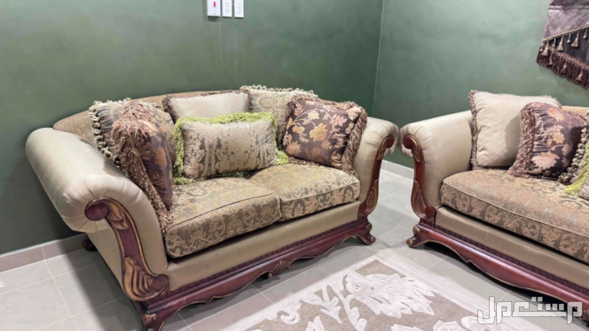 كنب بحاله ممتازه استخدام قليل جدا 3 قطع تكفي ل 7 اشخاص يتكون من 2 قطعة ثنائية ا قطعة ثلاثية (قطعه من نوع 3 انفار وقطعتين من نوع نفرين) بالاضافة إلى السجادة مجانا