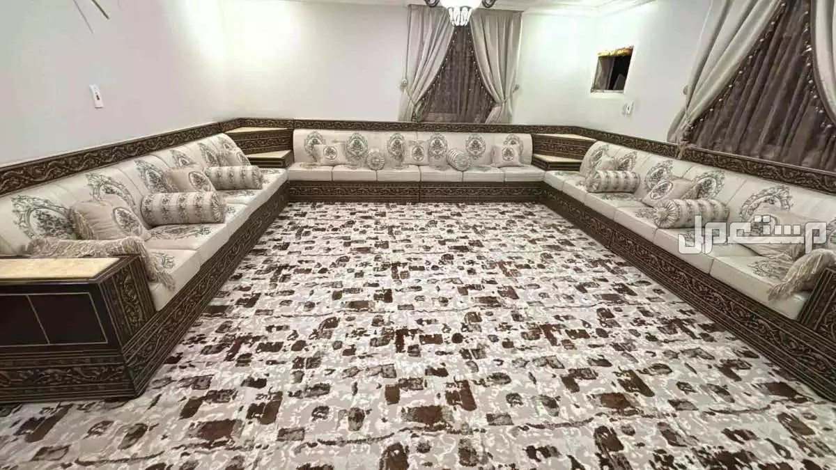 مجلس وستائر راقي على شكل زاوية (U)، نظيف جدًا وكأنه جديد، استخدام خفيف.
