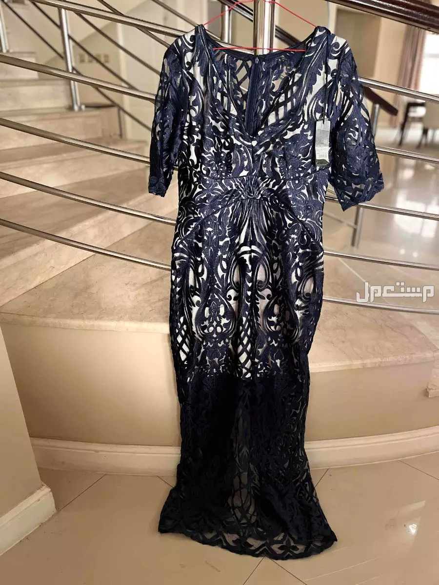 فستان سهرة أنيق من دبنهامز جديد بالتاق لم يلبس يوجد به شق صغير من الخلف موضح في الصور، يتخيط بتطريز بسيط مقاس 14 السعر 500 ريال قابل للتفاوض