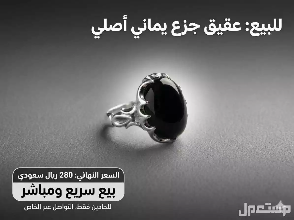 للبيع خاتم فضة عقيق يماني جزع أصلي. اللون: أسود (يقلب عسلي تحت الإضاءة). المقاس: 24. السعر: 280 ريال (نهائي - بيع سريع). التواصل: خاص.