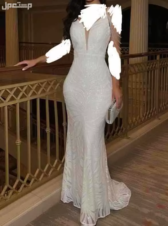 فستان ابيض جديد ملبوس مرا وحده فقط يبرق ويلمع شريته م صار لي شهر