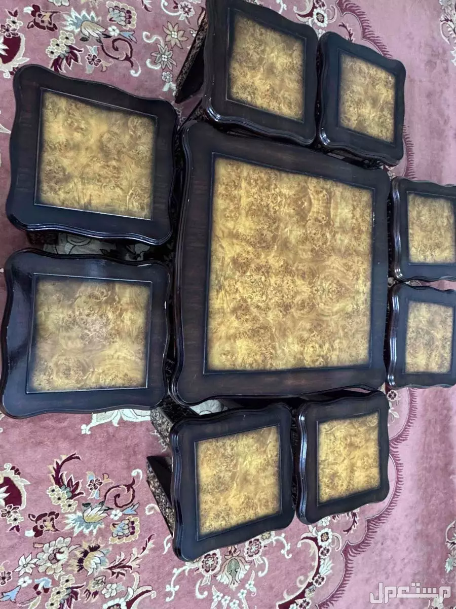 طاولة مجلس كبيرة معها ثمانية طاولات خدمة ، وجودتها ممتازة وفيها بعض الخدوشات البسيطة ، في حال ناسبتك الطاولات وناسبك الطقم تواصل معي عن طريق البرنامج او تواصل معي واتساب على هذا الرقم 0533882186