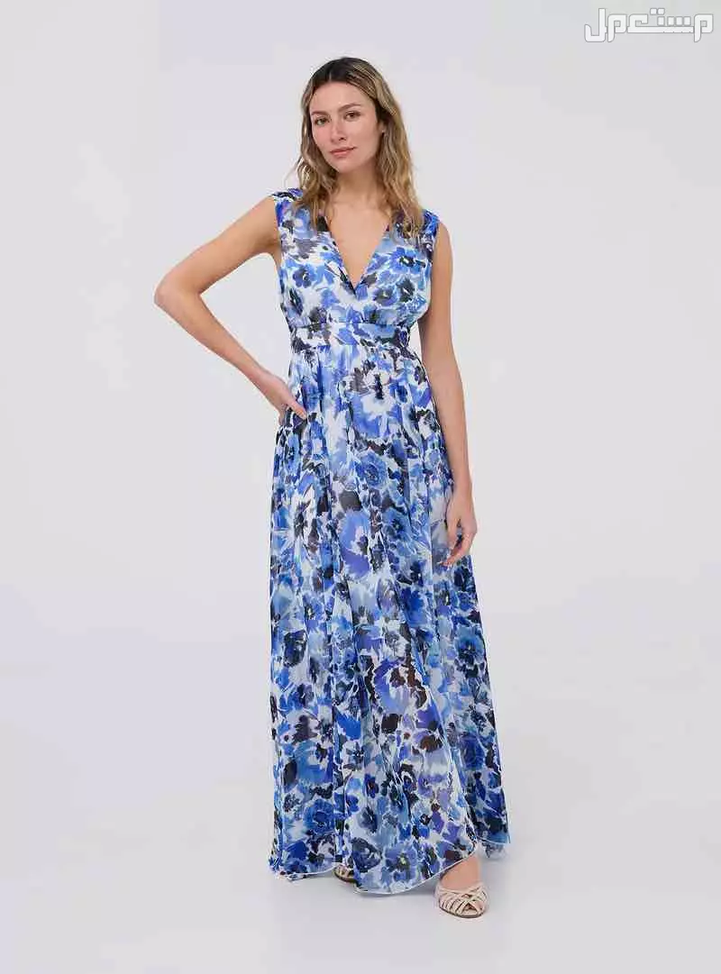 فستان ازرق ملون جديد بورقته للبيع مقاس S قماش ناعم طويل بدون اكمام في الطائف بسعر 110 ريال -التواصل في الخاص