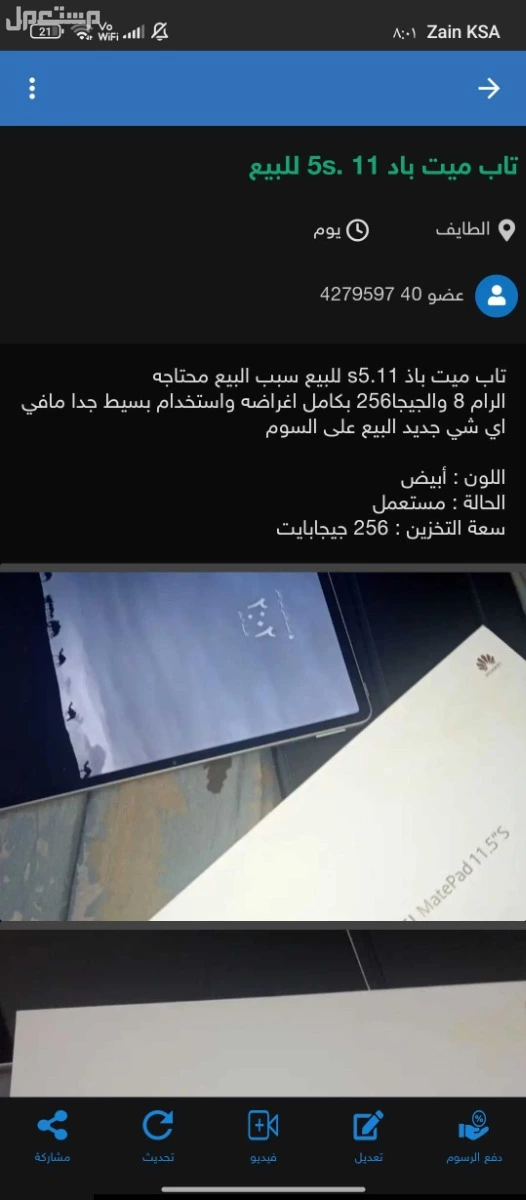 تاب ميت باد 11 .5s للبيع سبب البيع محتاجه اللون ابيض ومعه كامل ملحقاته ونضيف مره اسخدام بسيط جدا للبيع ع السوم