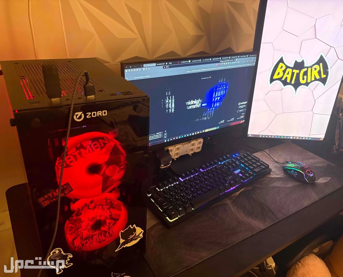 الجهاز مع شاشتين مع الطاولة والماوس والكيبورد