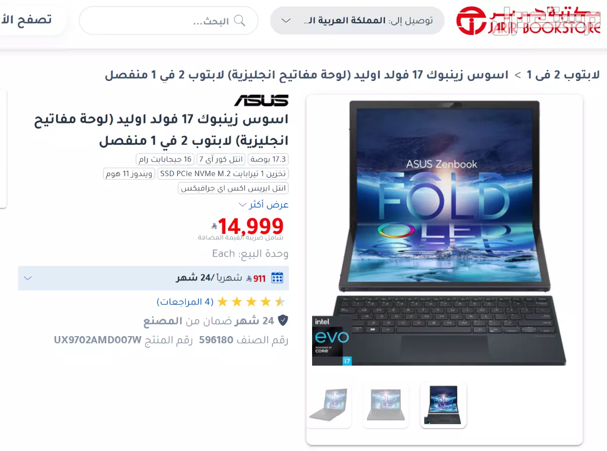 زين بوك من أسوس 17.3 إنش قابلة للطي بأكثر من وضعية