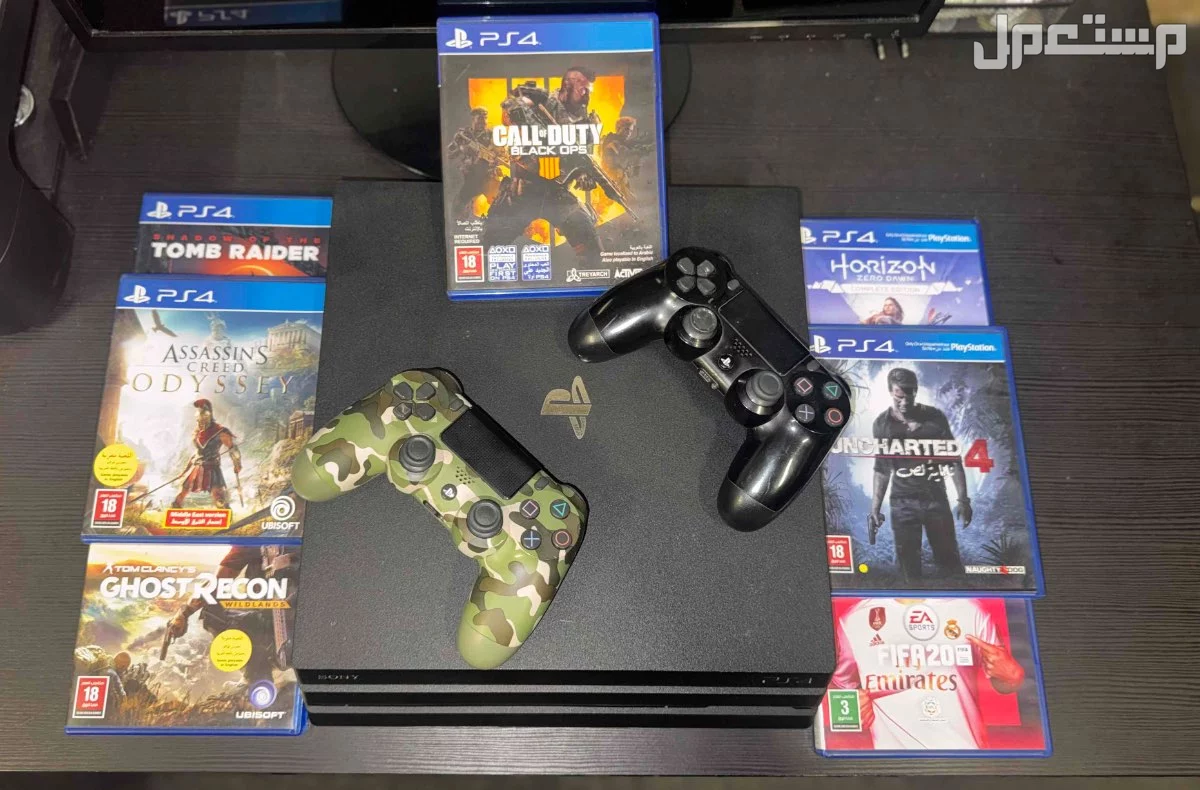 للبيع سوني بلايستيشن 4 برو ،مساحة التخزين 1 تيرا . يد عدد 2 الحالة ممتازة. 7 اشرطة العاب. كرسي جيمنج ماركة X Rocker .