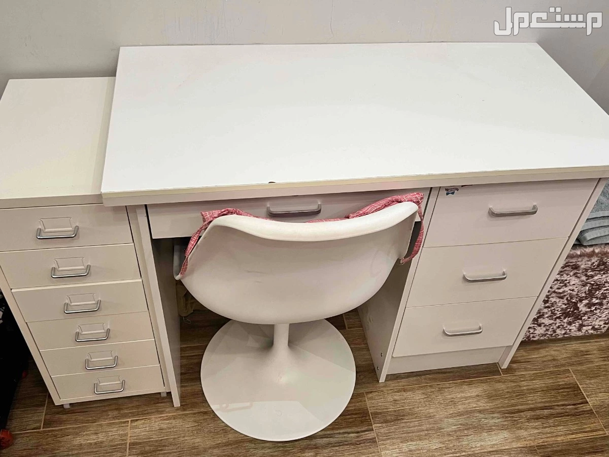 مكتب وكرسي استعمال نظيف جداا وادراج جانبية استعمال نظيف جدا استعماله 4 سنين ولكن مافيها ولا خدش وماتم استمالها كثير.