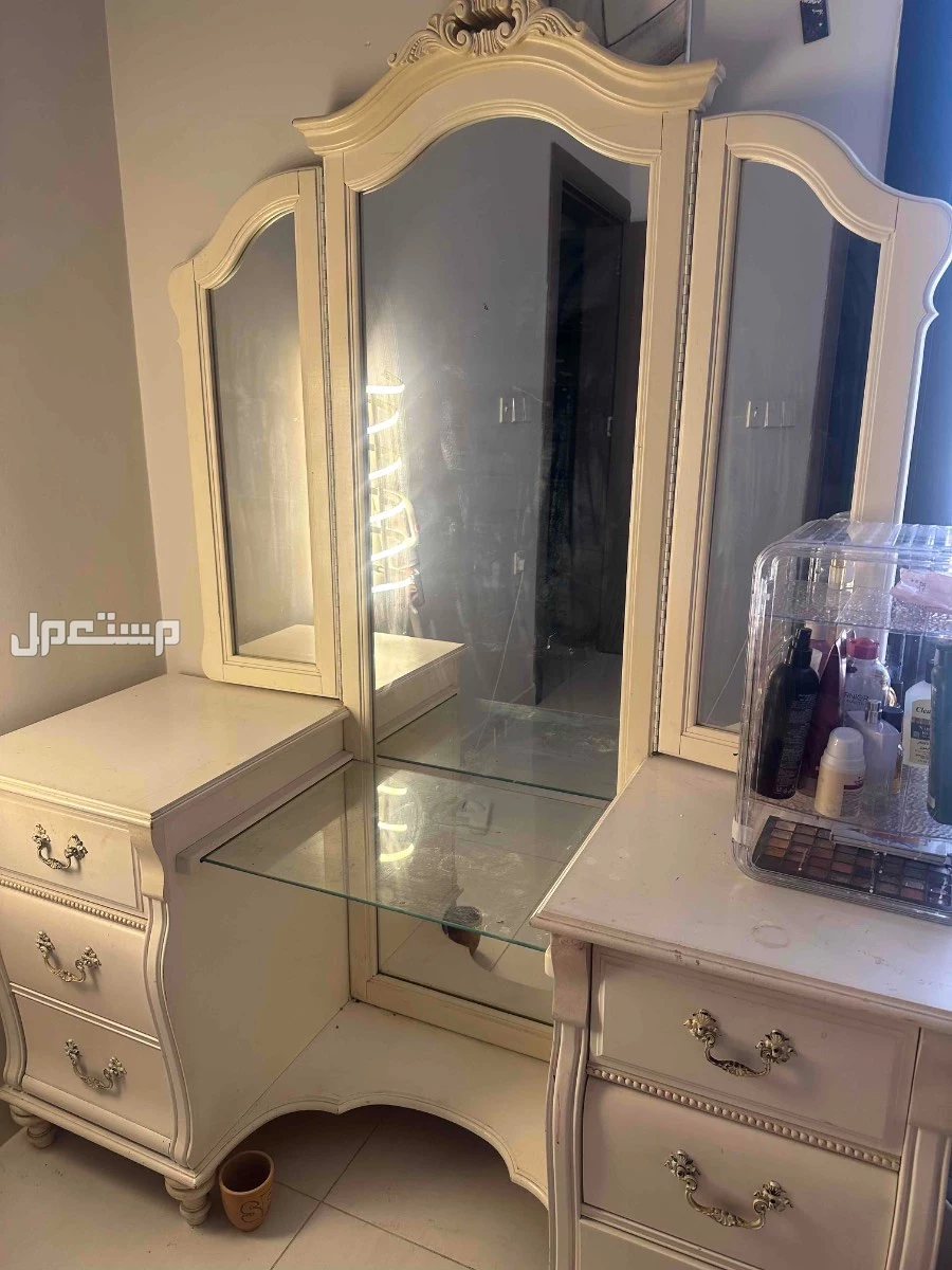 تسريحة خشب طبيعي مستعملة ب 400 ريال مع كرسي و مرايا كبيره تسريحة خشب طبيعي مستعملة ب 400 ريال مع كرسي و مرايا كبيره