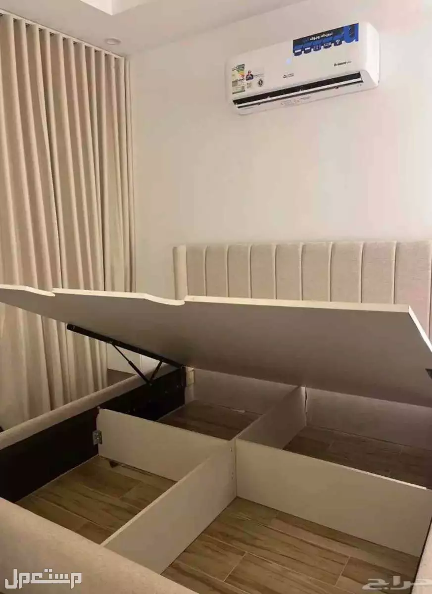 للبيع سرير آنيق بلون بيج ناعم، خامة فخمة جدًا واستخدم لفتره بسيطه يحتوي على مساحة تخزين واسعة أسفل السرير بتصميم عملي وسهل الرفع.