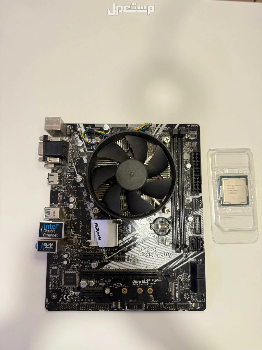 المعالج: Intel Core i5-9400F المذربورد: ASRock B365M-HDV المبرد: مرفق معاه الحالة: المعالج والمذربورد شغّالة 100%، كل شيء سليم ما عدا مشكلة بسيطة في صوت السبيكر الأمامي (ما يأثر على تشغيل الجهاز، المنافذ الخلفية تمام).