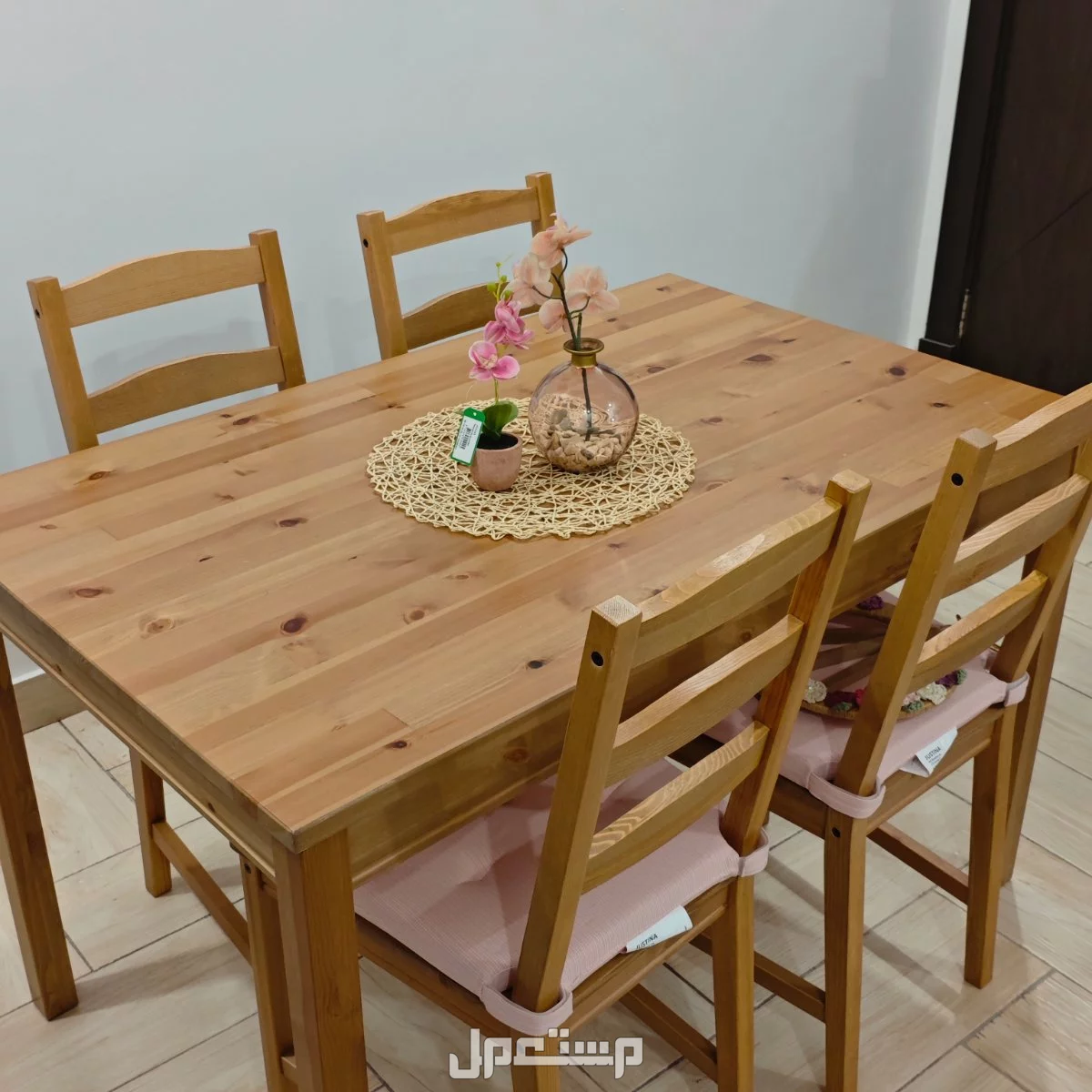 طاولة طعام خشبي نظيفة فيها خدوش بسيطة جدا موضحة في الصور + 4 كراسي الاستعمال جدا خفيف و مع الكراسي يوجد 4 مقاعد اسفنج 4 باللون الوردي و 4 لون رمادي مريحة جدا التواصل عالواتساب 0507012725