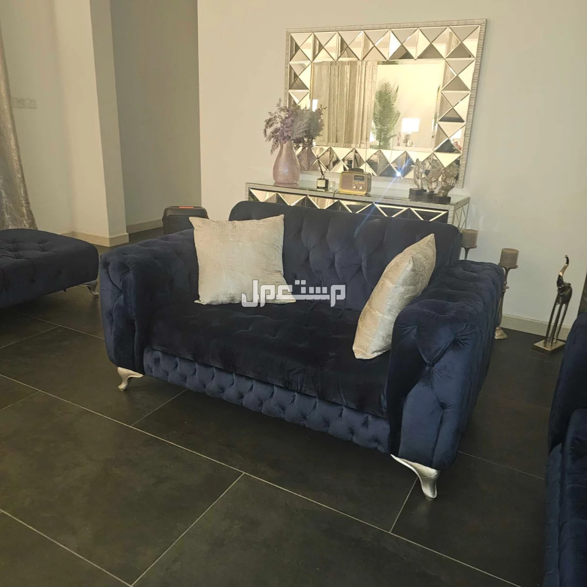 كنبة كبيرة 3 اشخاص وكنبة 2 اشخاض وكنبتين مغردة وشيزلون و6 كراسي سفرة كلهم من المخمل الكحلي الفخم مع مخداتهم