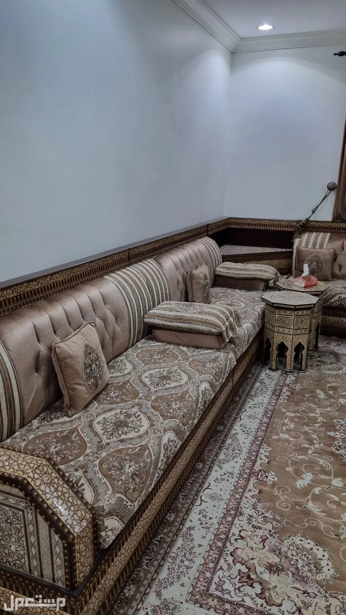 مجلس تصميم اسلامي حرف U يكفي لمساحه غرفة 4&6 البيع يشمل الكنب و4 طاولات صغيرة والطاولة كبيرة للجادين فقط 0544766302