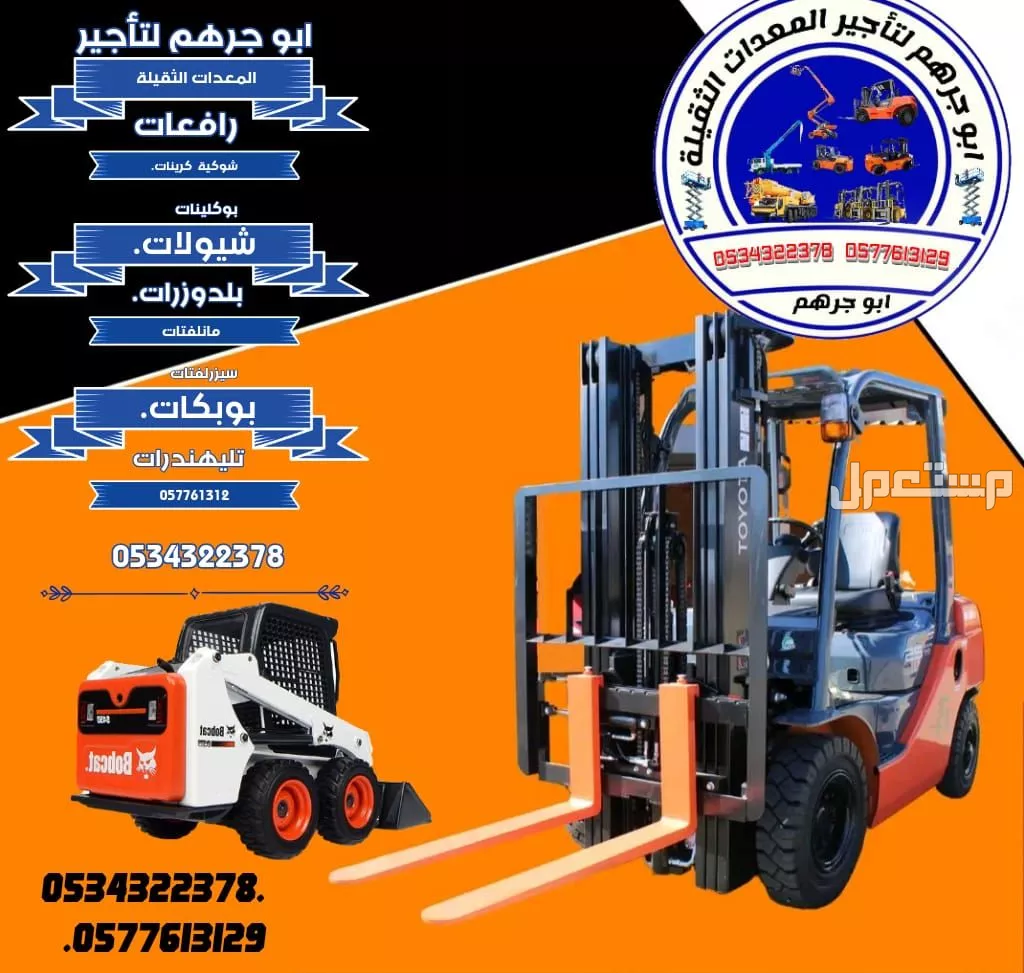 - 🚜 روافع شوكية (فوركلفت) تتراوح من 2 طن وحتى 16 طن.