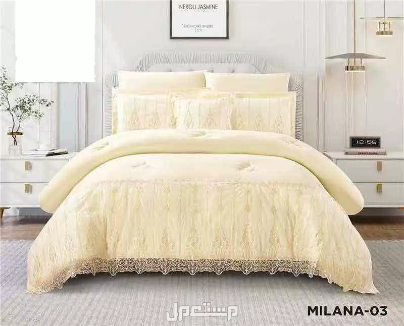 *مفرش ميلانا دانتيل راقي بـ خامة مايكروفايبر ناعمة 🪻* *بـتفاصيل بارزة وفخامة* *بملمس الجودة والاناقة* *نفرين 7 قطع🪻* 1 لحاف مقاس 240/260 1شرشف مطاط مقاس 200/200 4 كيس مخده كبير 1 كيس مخدة صغير السعر 230 ريال