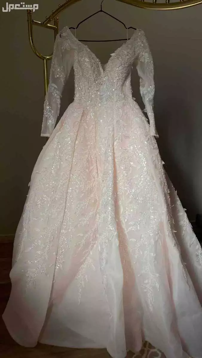 فستان زفاف فخم مقاس مديم الطول من 155 الى 160 يوجد معاه طرحه وجابون لونه وردي فاتح جداا المقاس قابل للتضييق لوجد رباط خلفي