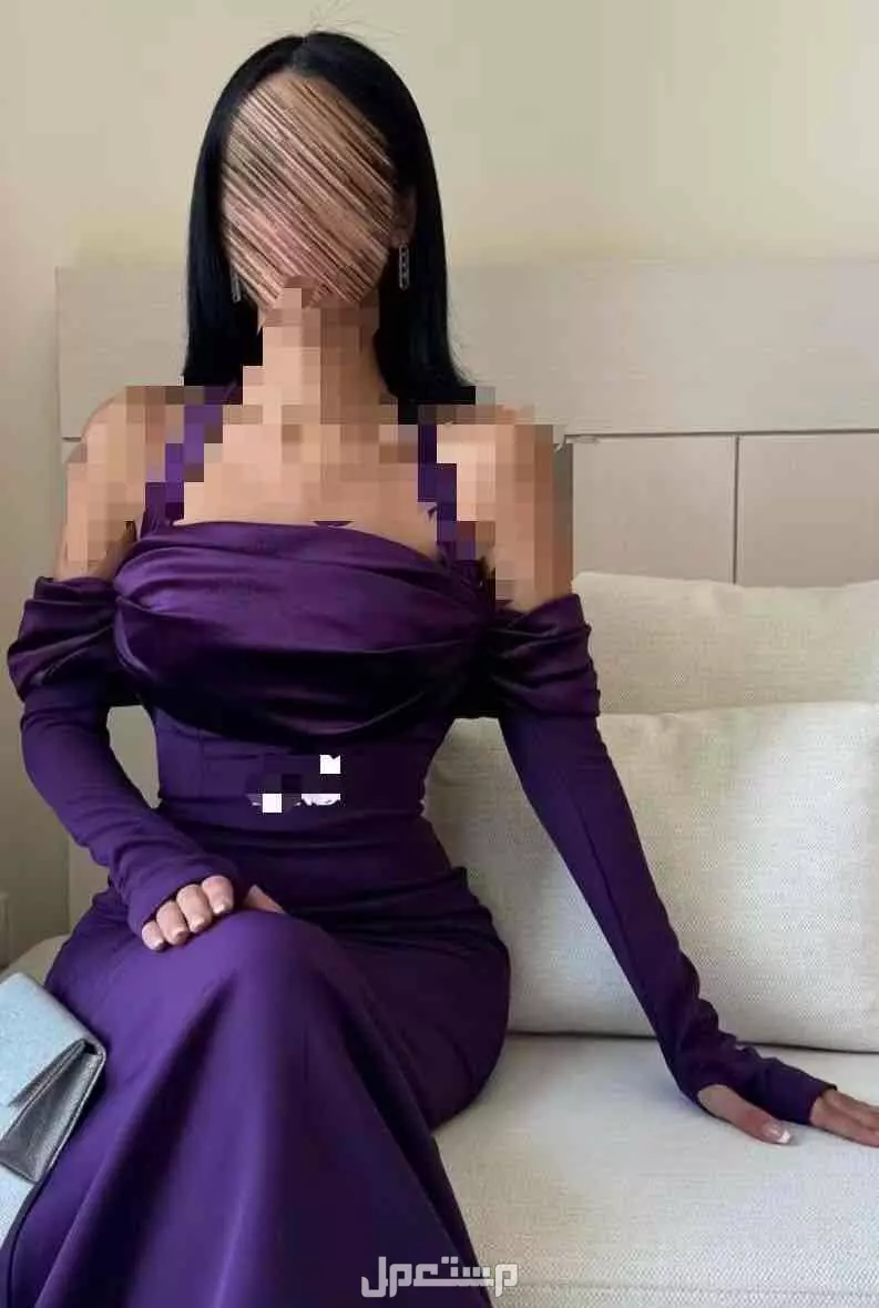 فستان سهرة بلون بنفسجي غني، بتصميم أوف شولدر (Off Shoulder) مع حمالات رفيعة تضفي توازنًا بين الجاذبية والنعومة.