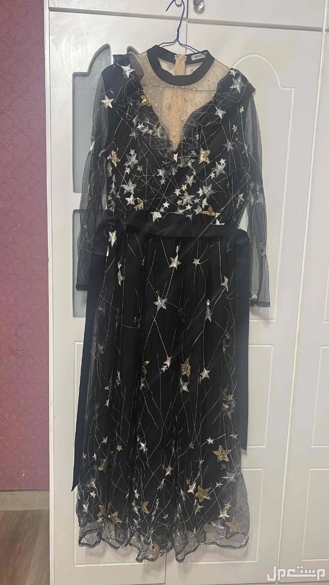 فستان سهره ومناسبات أسود مع ذهبي لم يلبس سوى مره واحده يلبس مقاس L و XL