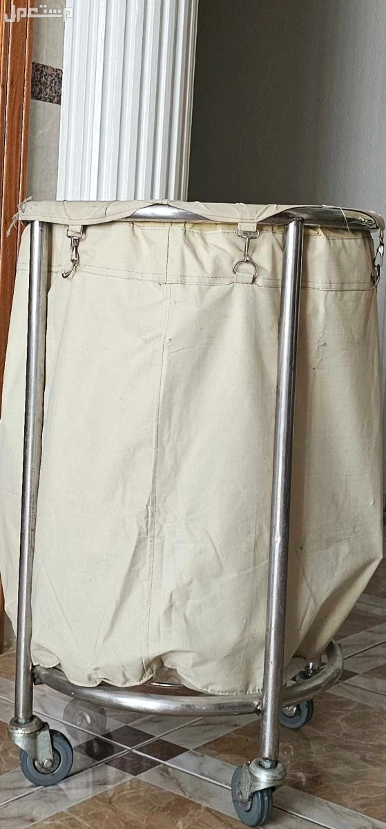 عربة لنقل الغسيل بكفرات ارتفاعها 80 سم قطرها 50سم عدد 3 عربات مستعملة بحالة جيدة تناسب الاماكن الكبيرة