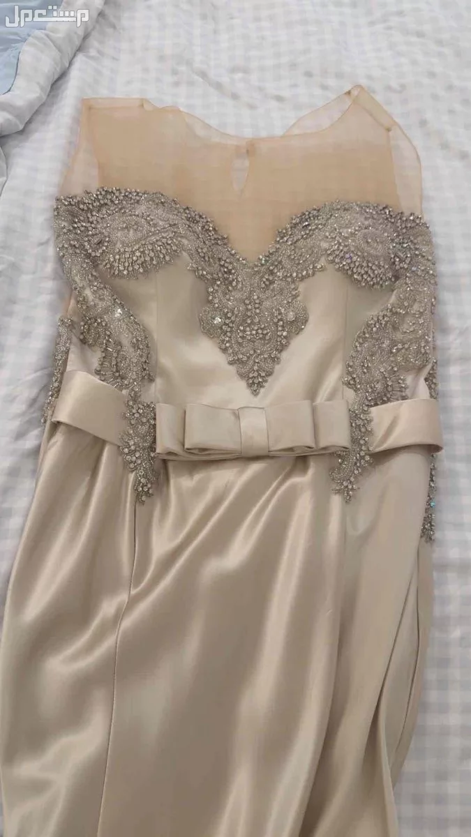 للبيع فستان سهرة شبة جديد بحالة ممتازة استعمال مرة وحدة لون عسلي على بيج -ذهبي بيج مع ديل طويل من الخلف