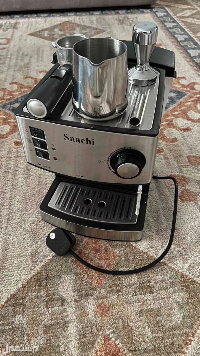 الة قهوة saachi استخدام خفيف مدة الاستخدام سنتين فقط ولا تشكي من اي شي جميع ملحقاتها معها نظيفه ومافيها اي مشكله