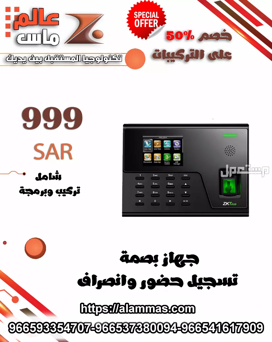 📢 عرض خاص على أجهزة البصمة للحضور والانصراف من مؤسسة عالم ماس!
