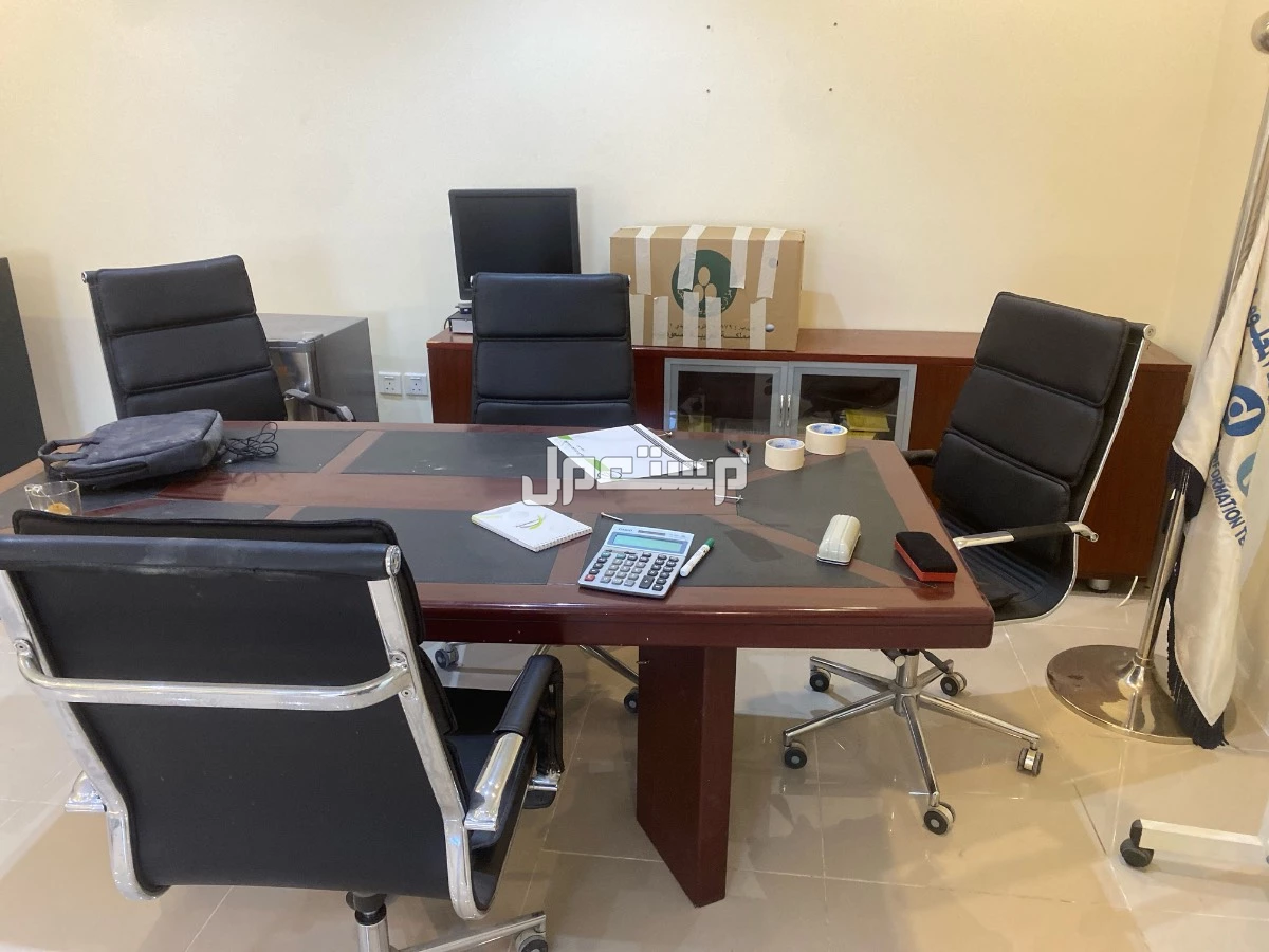 كراسي عدد 15 طاولتين اجتماعات وحدة كبيرة وحدة وسط كما هو موضح في الصور ثلاثه طاولات مكتبيه ودولابين مع ادراج مكتبيه جلسات كنب