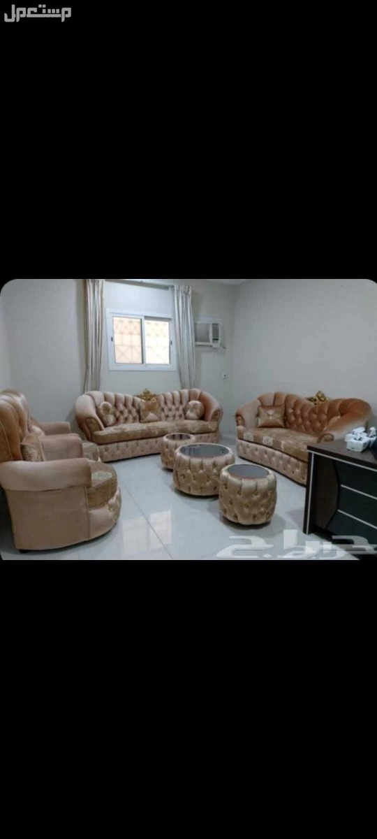 🛋️ طقم كنب موديل تركي لون ذهبي اشتريته جديد معه طاولات و سجادة صوف صناعة تركية للبيع كلهم ب 1200 ريال
