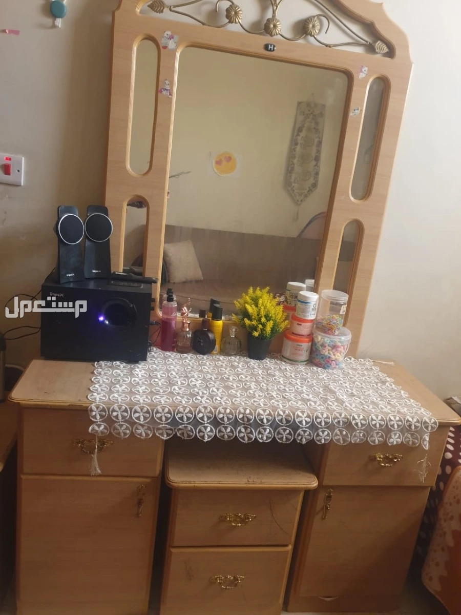 غرفة اطفال عبارة عن 2 سرير خشب 100×200 ودولاب كبير و2 كومدينو وتسريحة ب 200