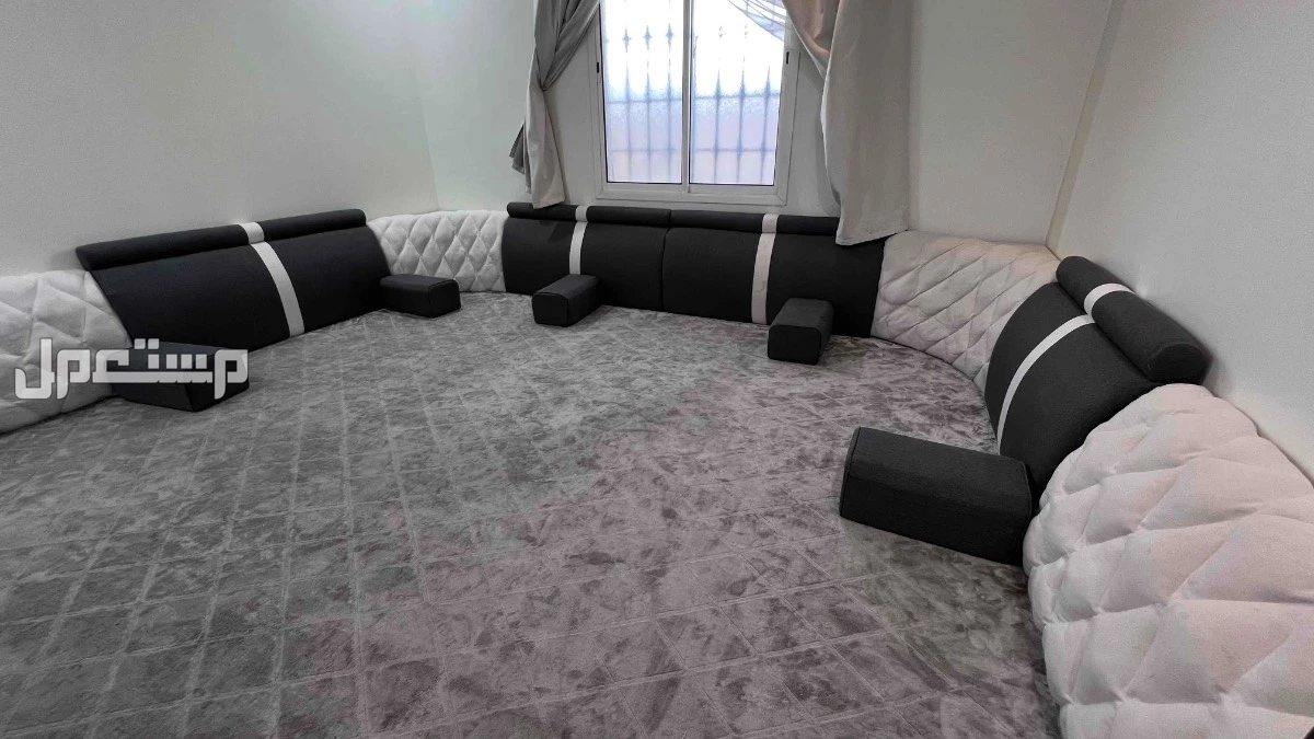 مجلس رجال ارضي 4 في 4 لون بيج ورصاصي جلسه ارضيه مساند ظهر خشب قوي لا توجد كسور مع مراكيها الصامل يتواصل واتس