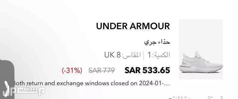 حذاء جري ماركة. أندر آرمور للبيع مستخدم شهر السعر الأصلي في موضح في الصورة سليم مقاس 42.5 سعر البيع 250
