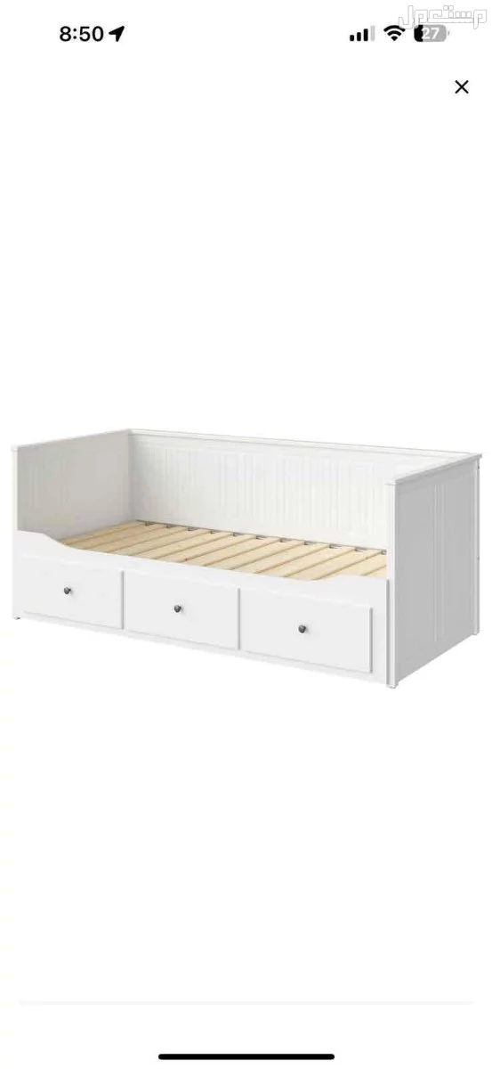 بيع سرير من ايكيا بحالة ممتازة، استعمال نظيف جداً بدون أي خدوش أو كسور، يشمل المرتبة، وبأسفله مساحة تخزين عملية