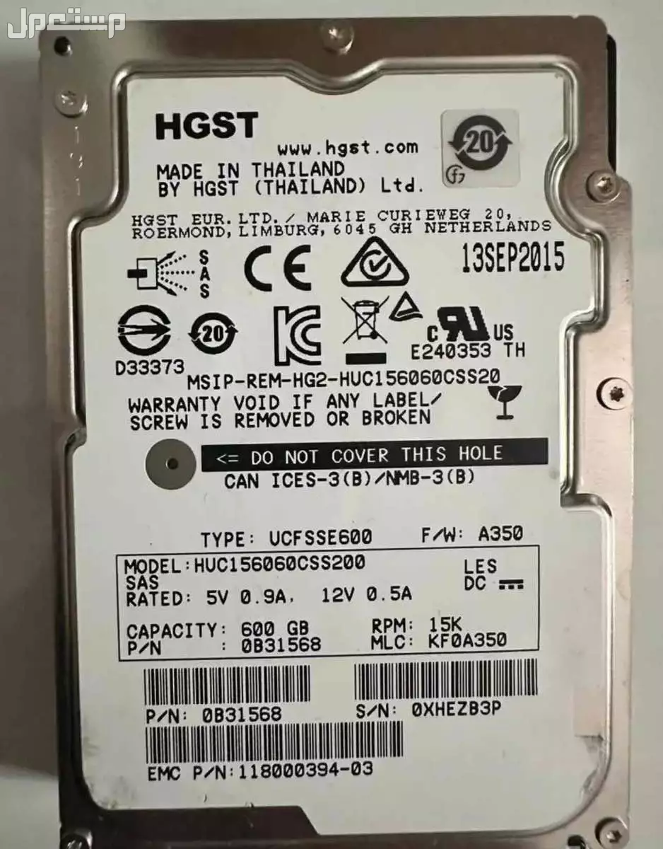 هاردات سيرفرات SecondHand ( Excellent Condition) بحالة ممتازة HGST 600GB 15K RPM 2.5 inch Seagate Savio 10K.6 900GB 10K RPM 2.5 inch HGST 1.2TB 10K RPM 2.5 inch Samsung Sas SSD 1.9 TB 2.5 Inch Toshiba Sas SSD 3.84 TB 2.5 Inch
