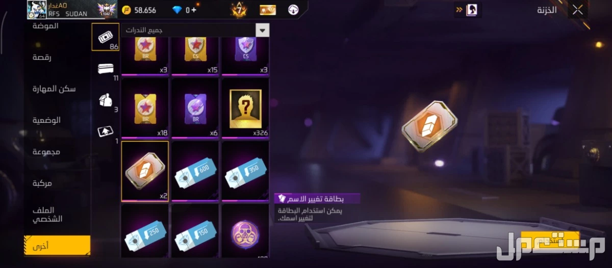 حساب فري فاير لفل 65 لوجادي تعال في الرياض بسعر 700 ريال سعودي