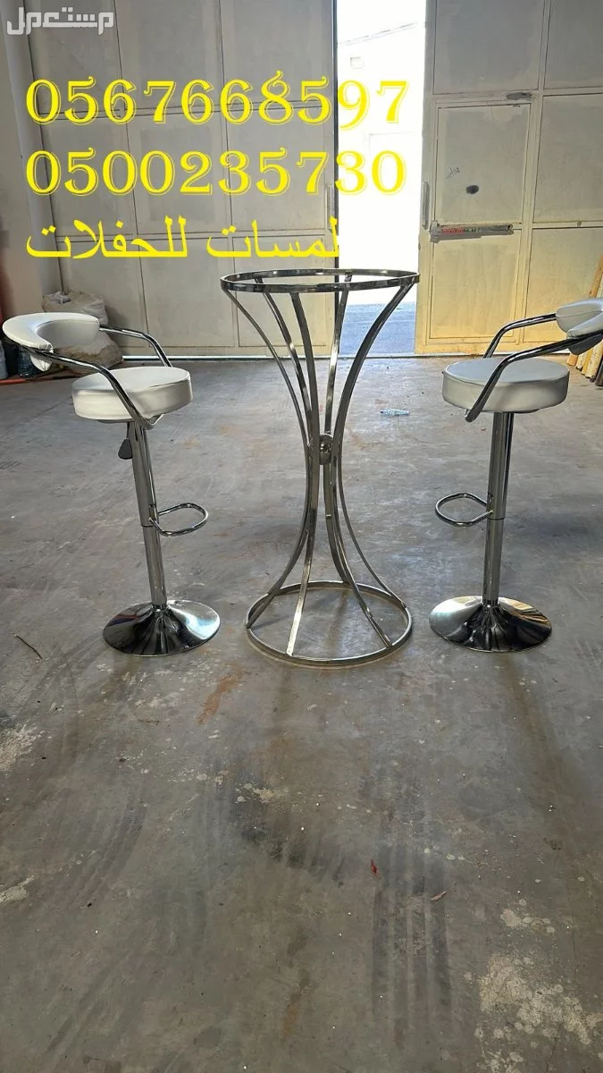تاجير طاولات كوكتيل متوفرة بالأنواع : مضيئة , تلبيسة , حديد مع خشب ,