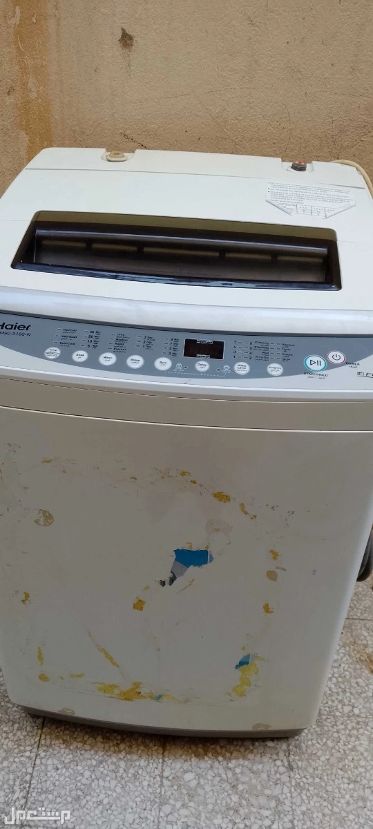 غسالة Haier تحميل علوي سعة 9 كيلو، شغالة بشكل ممتاز وجميع البرامج تعمل بدون مشاكل. العطل الوحيد هو حساس الباب أحيانًا يعلق عند بداية الغسيل ويحتاج تصليح بسيط. الجسم الخارجي فيه خدوش من الملصقات فقط ولا يؤثر على الأداء. سبب البيع شراء غسالة جديدة. السعر مناسب.