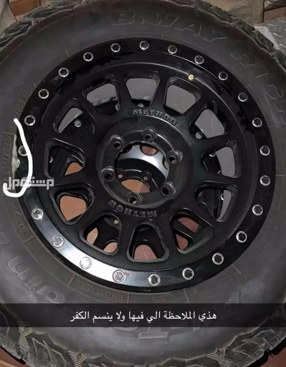 4 جنوط ميثود 6 مسامير راكبه على جمس سييرا معها صواميلها واكوابها كامله عليها بلوف حديد فيها ملاحظة وحدة ولا تاثر مافيها لاتنسيم ولا رجه