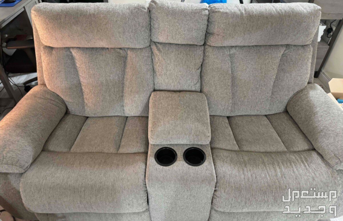 كنب استرخاء Recliner لشخصين ماركة ميشينز يتضمن مكان للأكواب وشاحن داخل التكاية.. الكنب مستخدم استخدام خفيف جدا جدا وشبه جديد