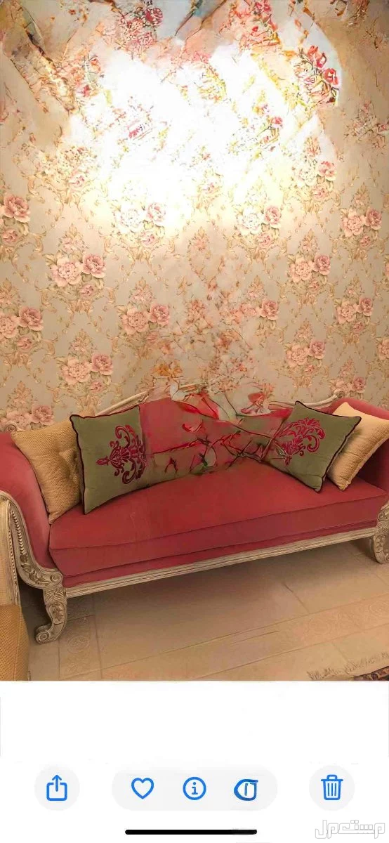 كنب خشبي ومخمل مكون من كنب كبير وكنبين وسط وكنبين مفرد وكنب صغير بدون ظهر مع طقم 3 طاولات خدمة خشبية وطاولة كبيرة مربعة خشبية في الوسط وستارة مخمل وشيفون بصندوق خشبي محفور بحالة ممتازة ..