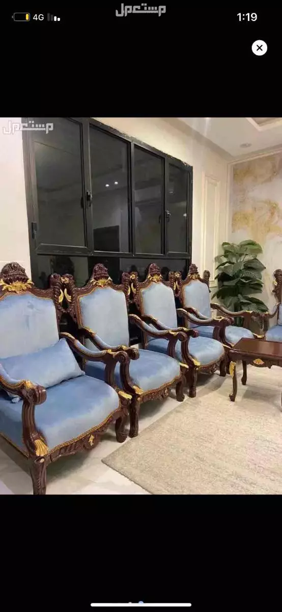 للبيع طقم كنب عدد 11 كرسي + طاولتين ومعاها ستارة بنفس التصميم.